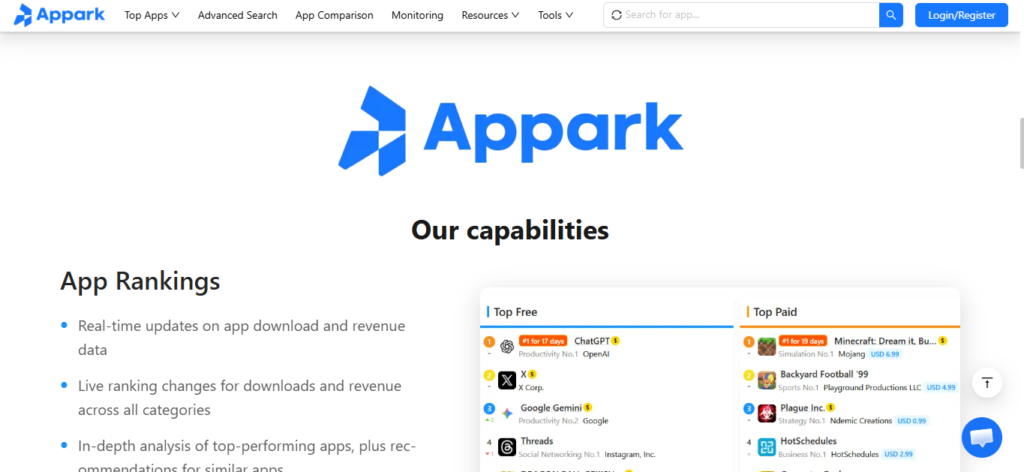 Appark enables users to access detailed information on mobile apps across categories and regions through its strong app analytics features. Developers are able to investigate market data, examine the metrics of app performance, and see patterns that show what strategies are effective within the industry.